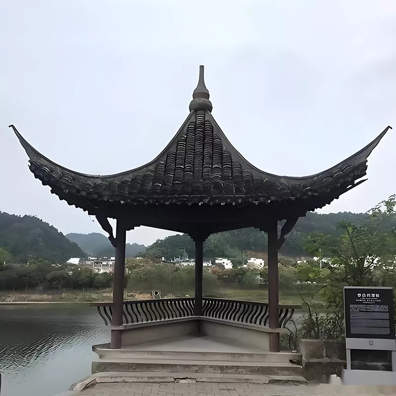 Mendukung penyesuaian ukuran non-standar (3000-6000mm), mencakup bentuk klasik Huizhou seperti paviliun puncak menara empat sudut, paviliun enam sudut, dan paviliun delapan sudut. Pilihan kayu termasuk borneol, cemara, pinus pengawet, dll., dan jenis ubin dapat disesuaikan dengan ubin hijau kecil dan ubin silinder. Pemasangannya menggunakan dasar beton untuk memperbaiki kolom, penyambungan struktur tanggam dan duri di lokasi untuk menghindari perakitan kekerasan yang merusak duri. Atapnya dipasang oleh tukang ubin profesional sesuai dengan keahlian Huizhou untuk memastikan drainase yang lancar, dan keseluruhannya mempertahankan keteraturan dan pesona arsitektur kuno Huizhou.
